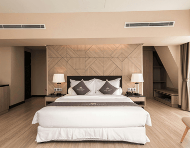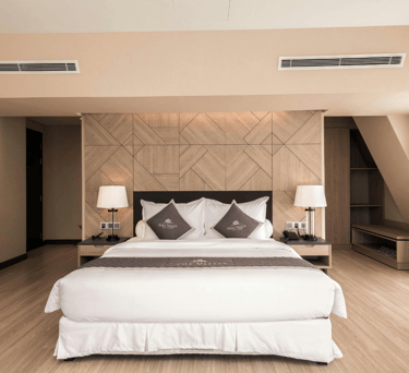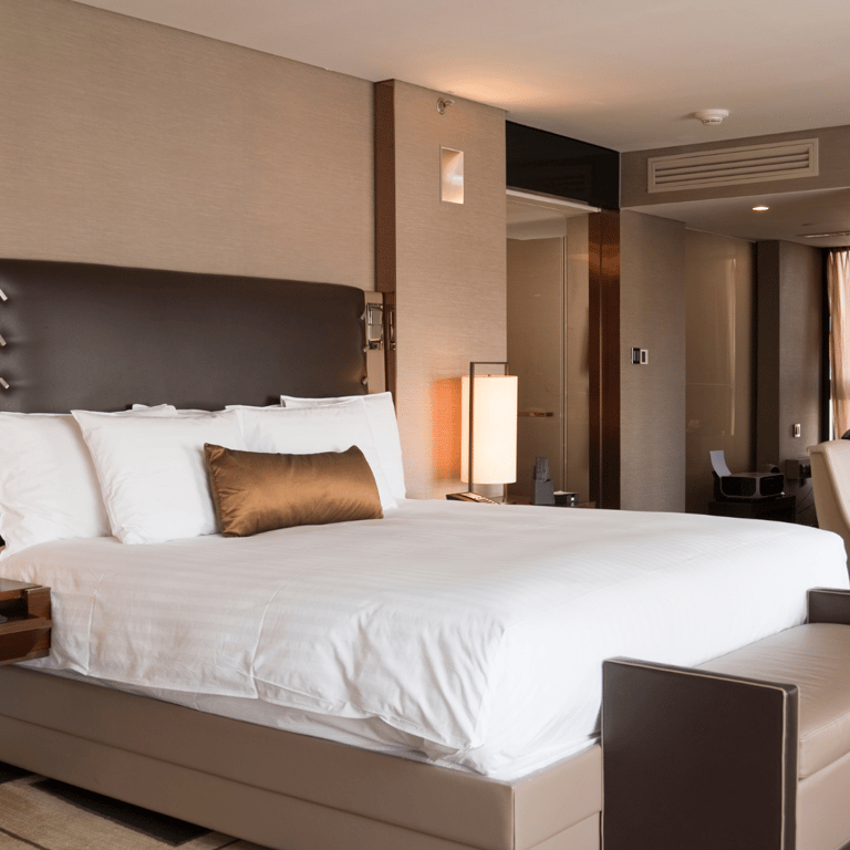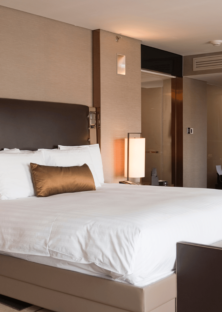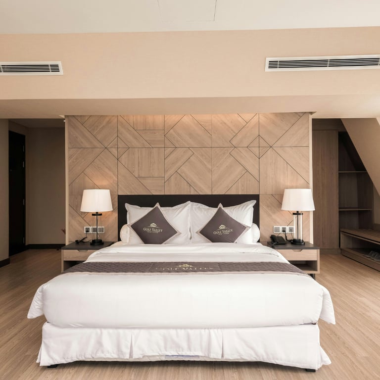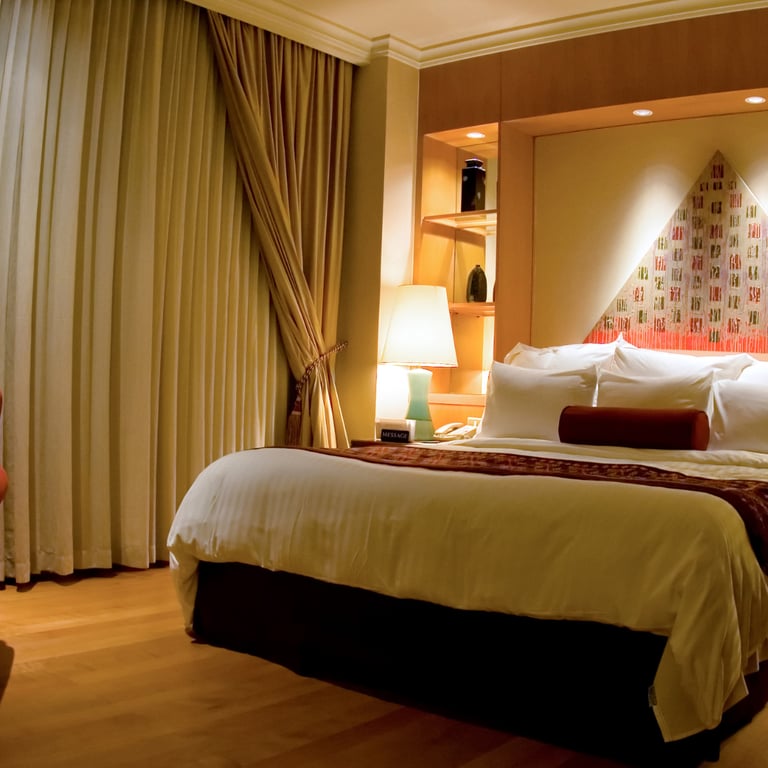 تصميم غرف النوم الفندقية يهدف إلى توفير تجربة متكاملة تجمع بين الراحة، الفخامة، والوظيفة، وذلك من خلال الألوان الهادئة والمحايدة، الأثاث المريح وعالي الجودة، الإضاءة اللطيفة، والمساحات المستغلة بذكاء. يعتمد التصميم علي عناصر مثل الجودة والاناقه والاهتمام بالتفاصيل لخلق جو هادئ وجذاب يرضي الضيوف