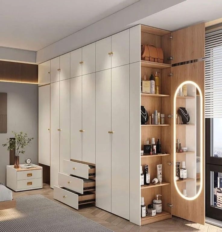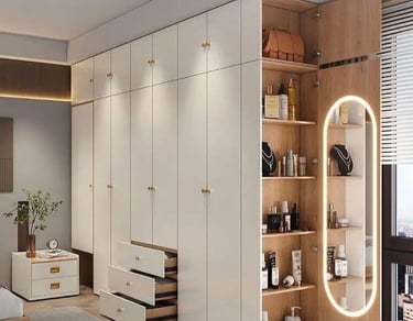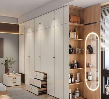 تعتبر الخزائن مفتاحًا لتحقيق التنظيم والجمال في أي مساحة تأتي الخزائن بتصاميم متعددة تتناسب مع مختلف الأذواق والاحتياجات تشمل التصاميم المعاصرة و المبتكرة مع خيارات وتشطيبات متنوعة من الخشب الشيبورد الاوربي والمعادن والزجاج، مما يضيف لمسة فنية إلى الديكور الداخلي